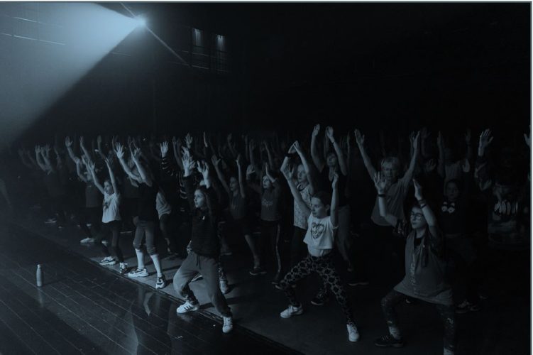 Quatre musiciens et une danseuse embarquent le jeune public dans une séance de sport rock n’roll, collective et participative. Grâce à une musique énergique et à une série de mouvements à exécuter simultanément, les artistes établissent une connivence avec ce public et abordent tour à tour les questions importantes qui traversent l’adolescence tel que l’estime de soi, le regard des autres, le règne de la silhouette et cette injonction permanente à se définir par le paraître.